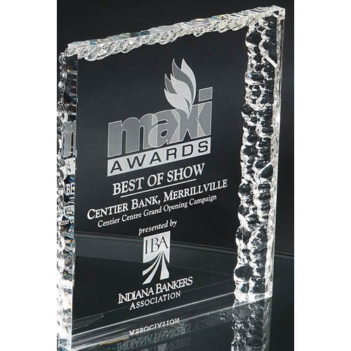 Clear Crinkle Edge Acrylic Block, 5.25 inches. This acrylic is perfect for a Leadership and Appreciation Award.