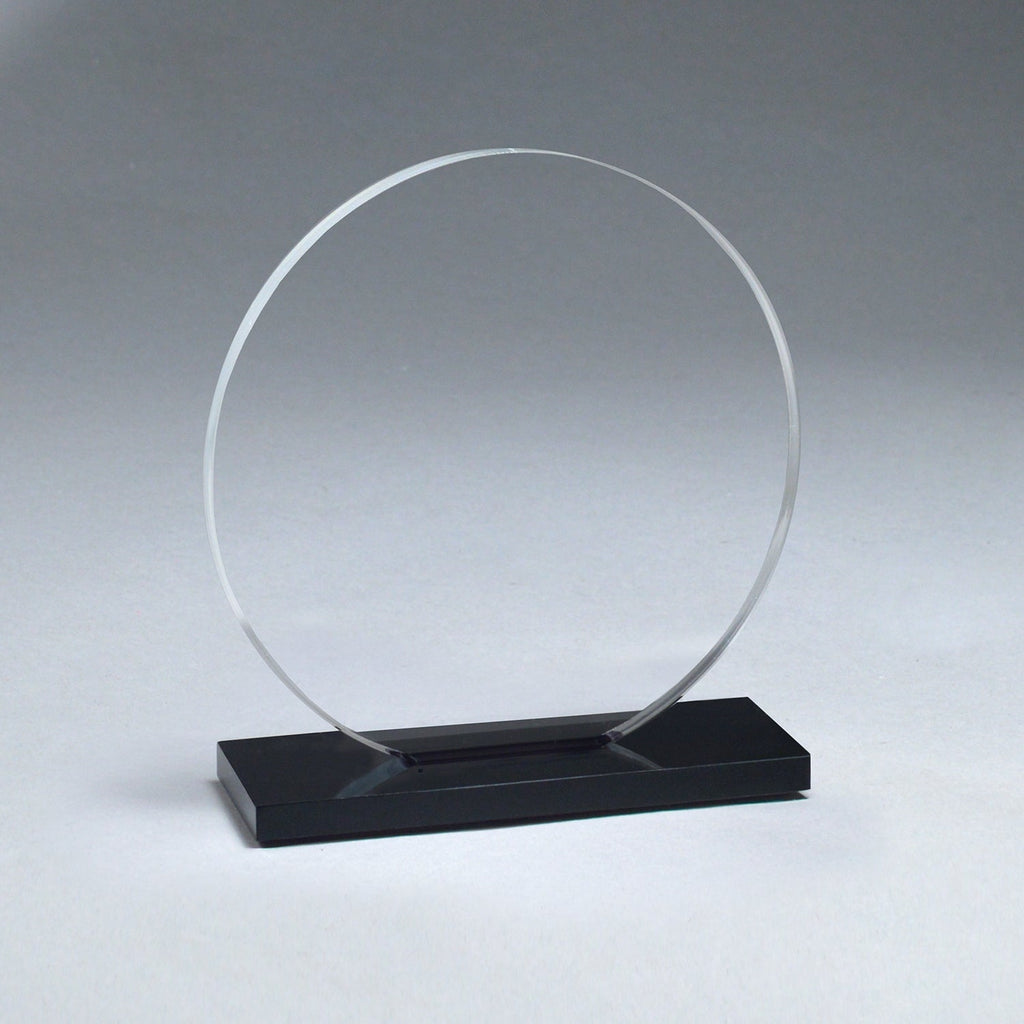 This Clear Acrylic Starfire Circle design with an ebony acrylic base is contemporary and eye-catching with its precision-cut frosted lasered personalization. Logos easily incorporated and we can also UV print in color to enhance this popular award even more!