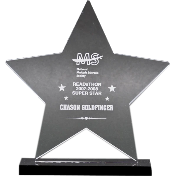 Dare to dream with this 7.5" high Acrylic Starfire Star! Customize and personalize this star-shaped, clear acrylic trophy to boldly display your accomplishments. Let your stars shine with this laser-engraved award, or get creative with a full-color imprint. Let your vision of success take off!