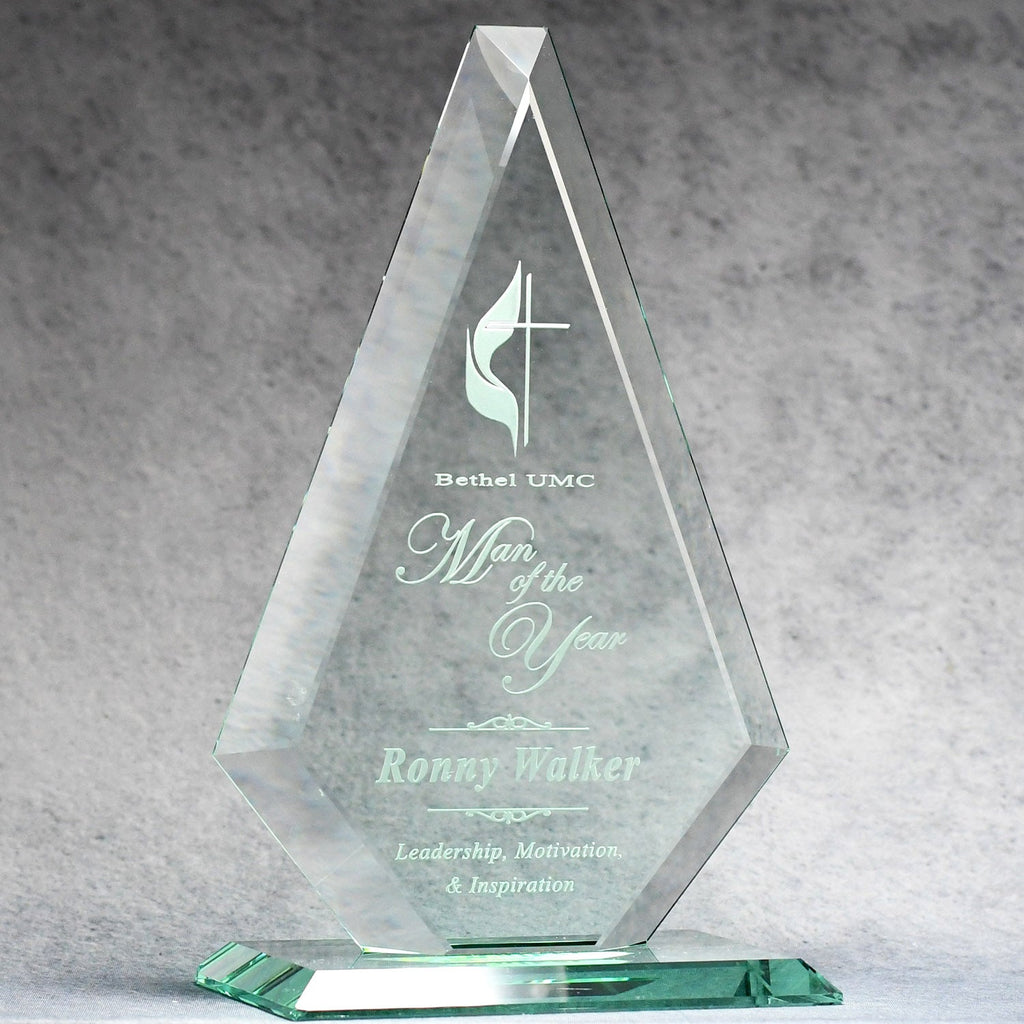 The "American" diamond is our very own new exclusive design! This .75-inch thick, multi-faceted diamond with its matching beveled base is impressive in size and weight and is sure to make a lasting impression. Precision-etched personalization states the stellar accomplishments of the recipient being recognized for years to come!