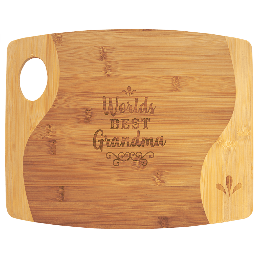 Our Bamboo Two Tone Cutting Board with Handle is the perfect addition to any kitchen. Its natural bamboo construction boasts a stunning two-tone coloring and a comfortable handle, while its three available sizes make it ideal for any meal or occasion. For a personal touch, opt to have it laser engraved. Its elegant design and craftsmanship will be a timeless addition to your kitchen.