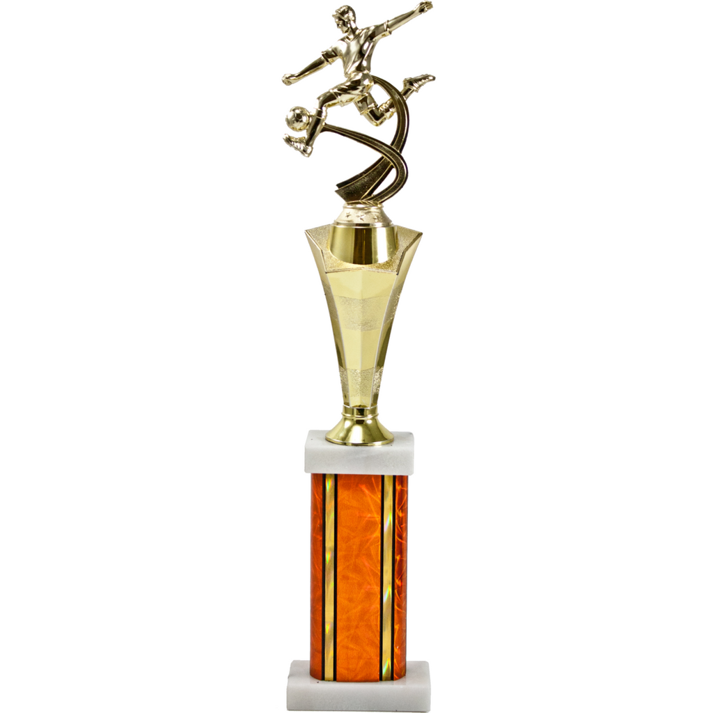 Gold Star Shaped riser adds real star status to the motion figure trophy. Choice of column colors. Personalization plate included.