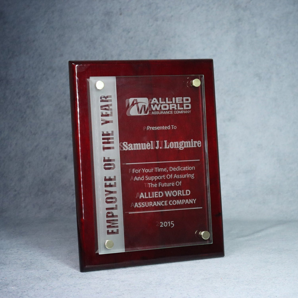 This unique and distinctive award has a clear glass panel offset with silver-toned hardware from a black ebony or rosewood piano finish wood background creating impressive depth. Add custom text, images, or logos to create the perfect presentation gift to honor employees, and members of your organization, or recognize generous donors to your cause. This distinctive item can be a great way to honor Employee of the Month. This item can be a wonderful wedding, birthday, or anniversary gift. Let us help you bring your vision to life! Available in three sizes to suit your needs.
