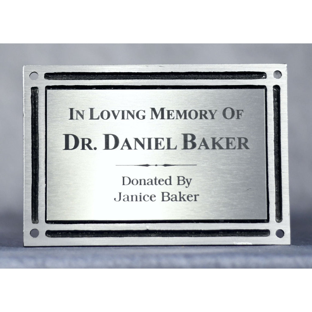 This cast aluminum plaque has a raised double border in silver or bronze and a recessed area for your personalization plate. The plaque comes with a 24" aluminum stake rear-mounted to allow for display. It is a perfect way to honor those you love and respect. This plaque is outdoor durable, creating a permanent tribute.