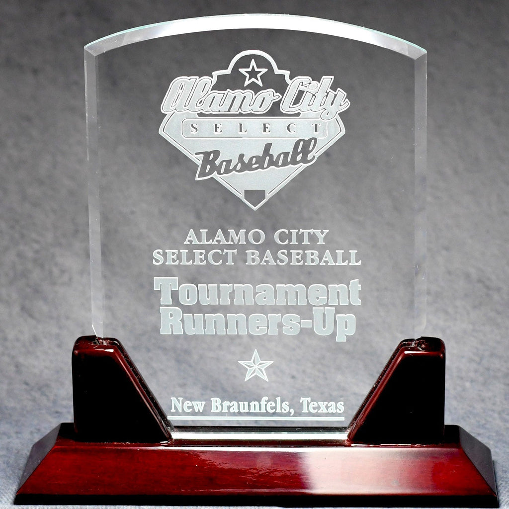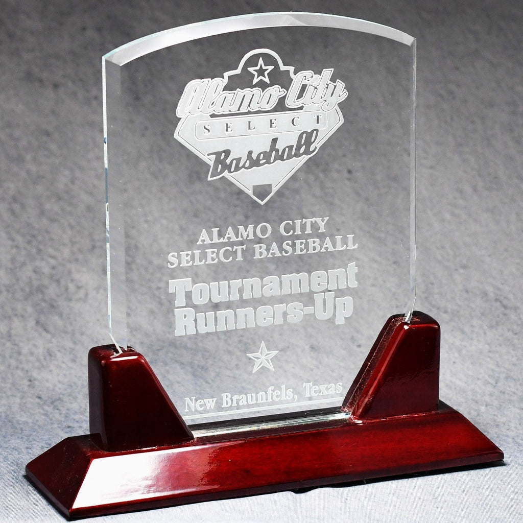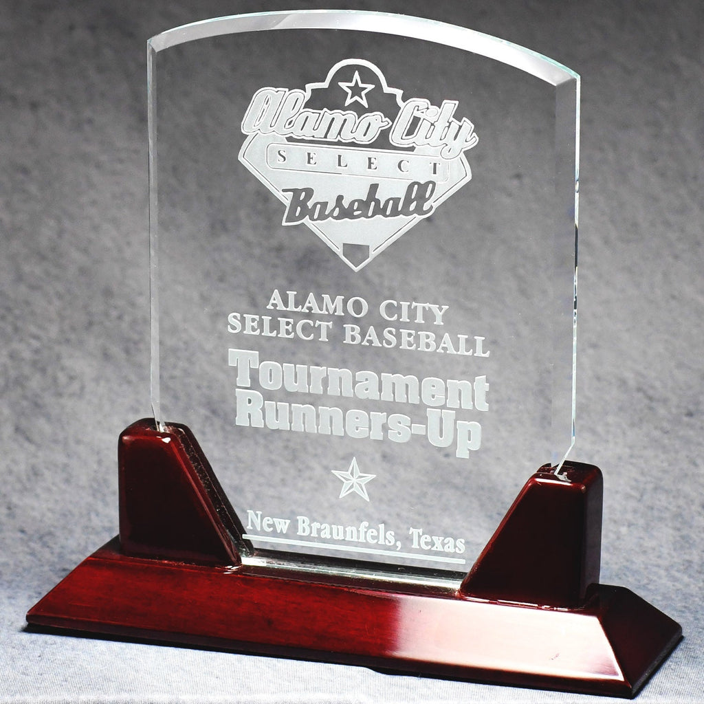 The "Spirit" Clear Crystal Arch Award is elegantly set into a Piano Finished Rosewood base. This sophisticated, yet refined style will appeal to all. Etched personalization states the stellar accomplishments to be recognized for years to come!