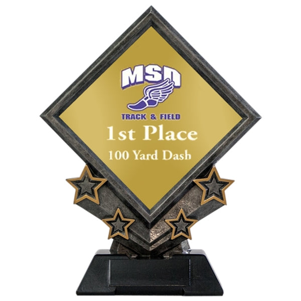 Diamond Star Silverstone Sculpture. The resin award can be customized with lettering or a logo on the Diamond shape plate. Small plate available for base.