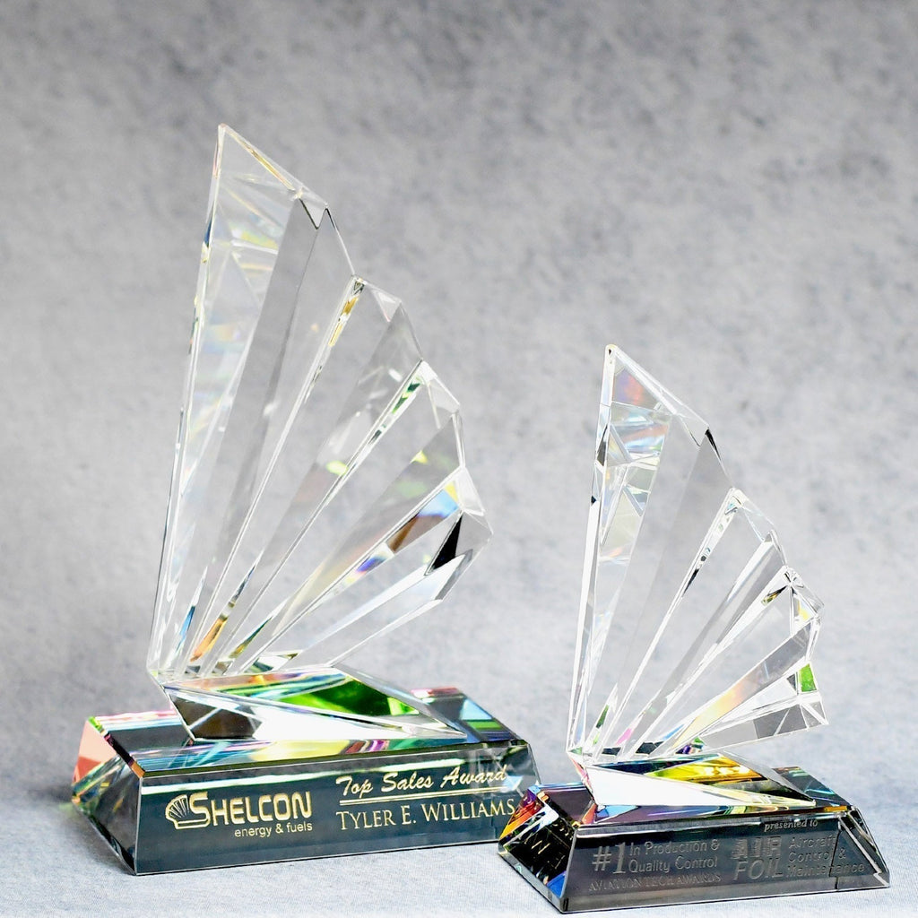 Pure fanfare with this extremely thick and delightful highly beveled spectra color piece of art. Quality craftsmanship is evident on the wide polished bevels reflecting light and color. This selection will make an attractive addition to any decor in both an office and home setting. Your awardee will gleam with pride when presented with this impactful recognition. Add your perfect message and logo to enhance the impact.