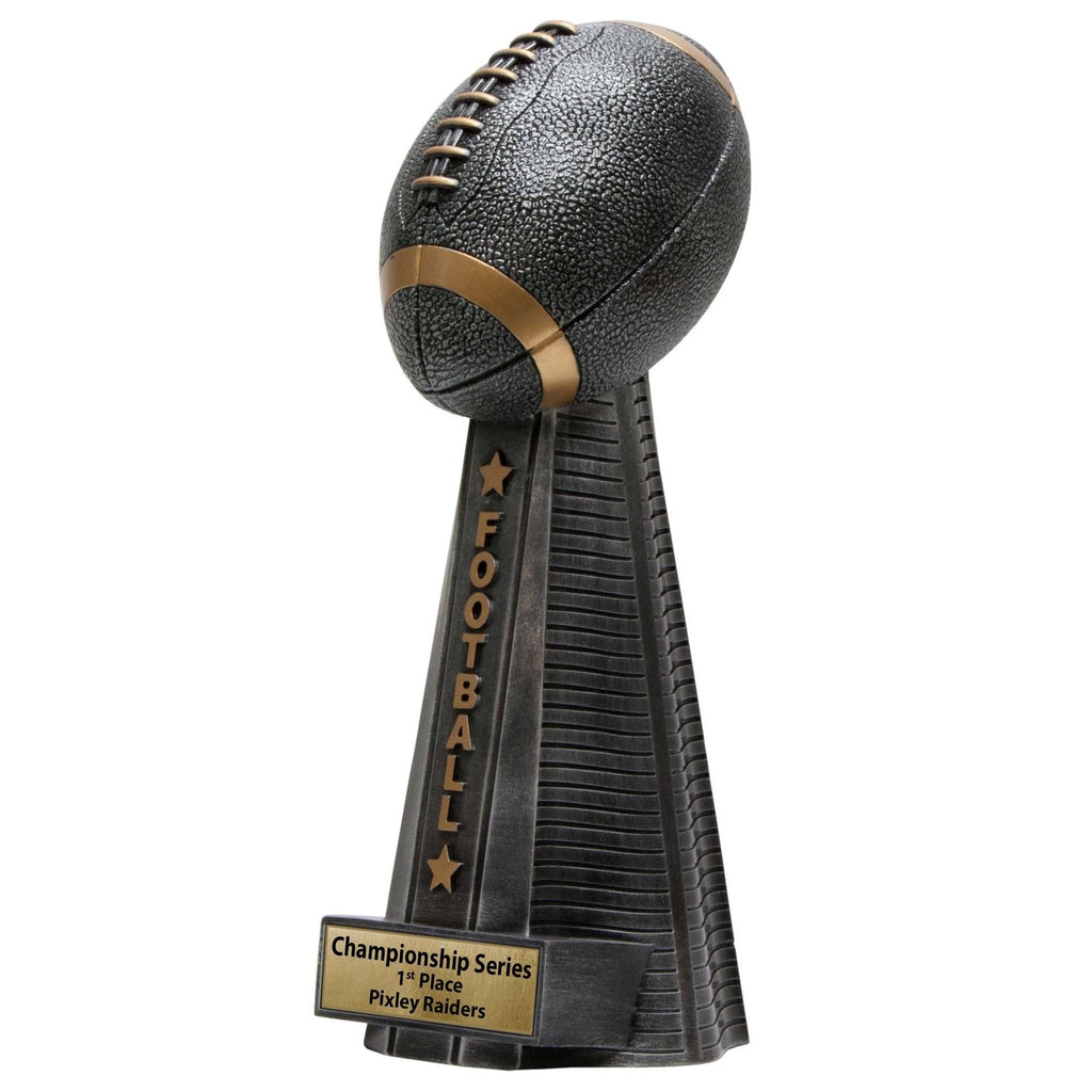 This is a classic version of the famous Super Bowl Trophy, perfect for outstanding teams, players or fantasy league champions. It is available in three different sizes and is sure to leave a great impression. The attached gold plate can bear your message, special logo or design to make it more personalized.