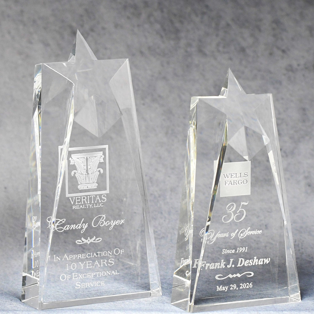 The leaders among us show us the way as they ascend to the top. This towering Mega Star is made of Optic Crystal with a large front panel for optimum space to recognize out-of-this-world achievements.