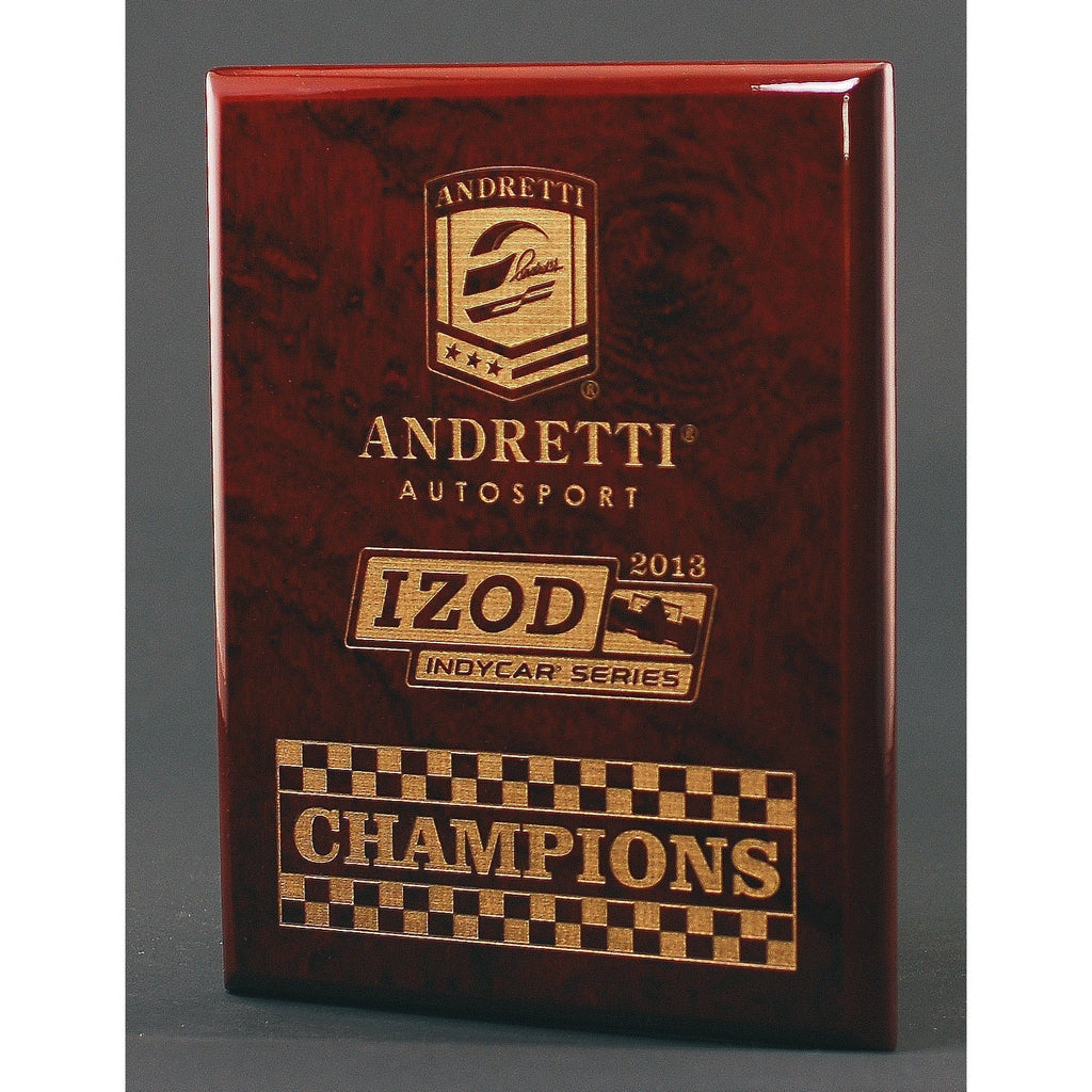 Rosewood Piano Finish Plaque with laser engraving directly on the plaque. The modern appearance looks great in the office or lobby. A large imprint area can easily accommodate any logo and text.