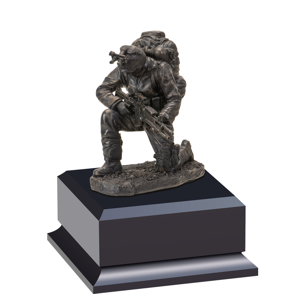 Show your appreciation for military service with this 6" statue of a soldier praying - a moment to reflect and recognize the courage and commitment of those who defend our nation. Mounted on a cherry-finished plate, it's a heartfelt way to thank a brave friend or family member. A personalized plate included for your special message.